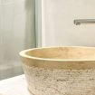 La casa è composta da ingresso con soggiorno, tv e cucina completa di stoviglie ed elettrodomestici come forno, frigo, freezer, macchinetta del caffè e microonde.