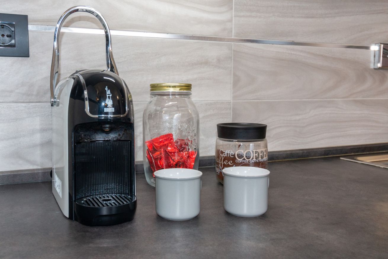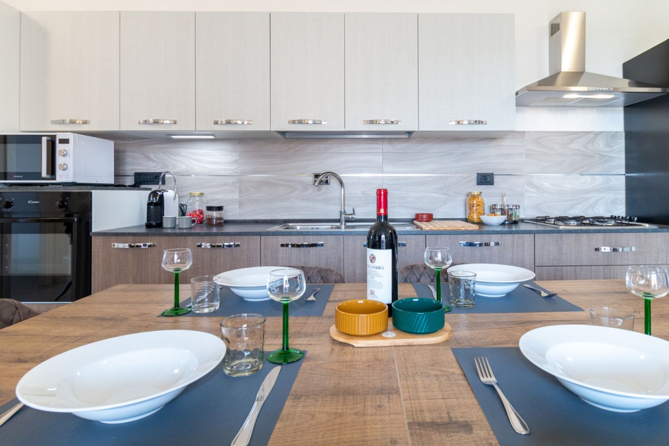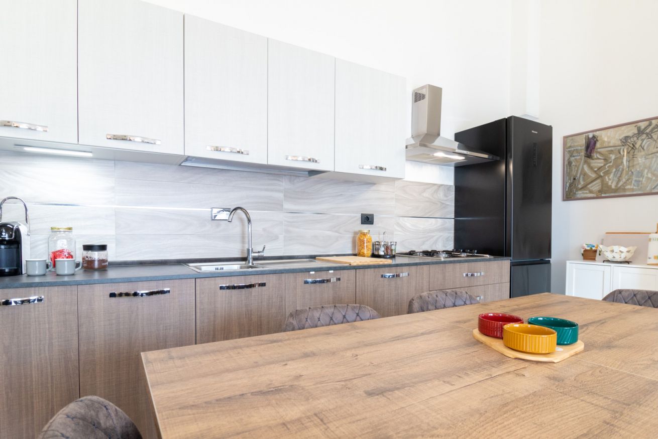 Una cucina moderna completamente attrezzata con tutto il necessario per cucinare in libertà
