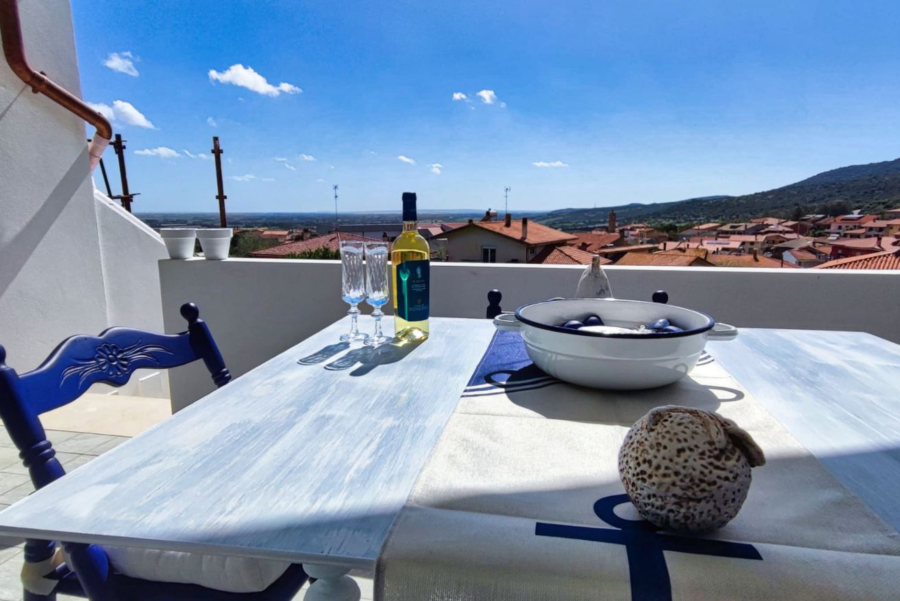 Dalla terrazza privata si gode di una vista mozzafiato: le campagne verdi di Narbolia si aprono fino a San Giovanni di Sinis, regalando paesaggi spettacolari in ogni stagione.