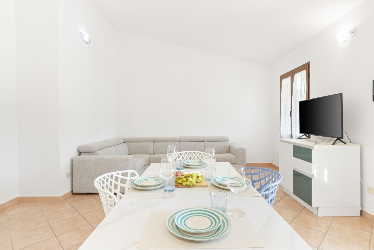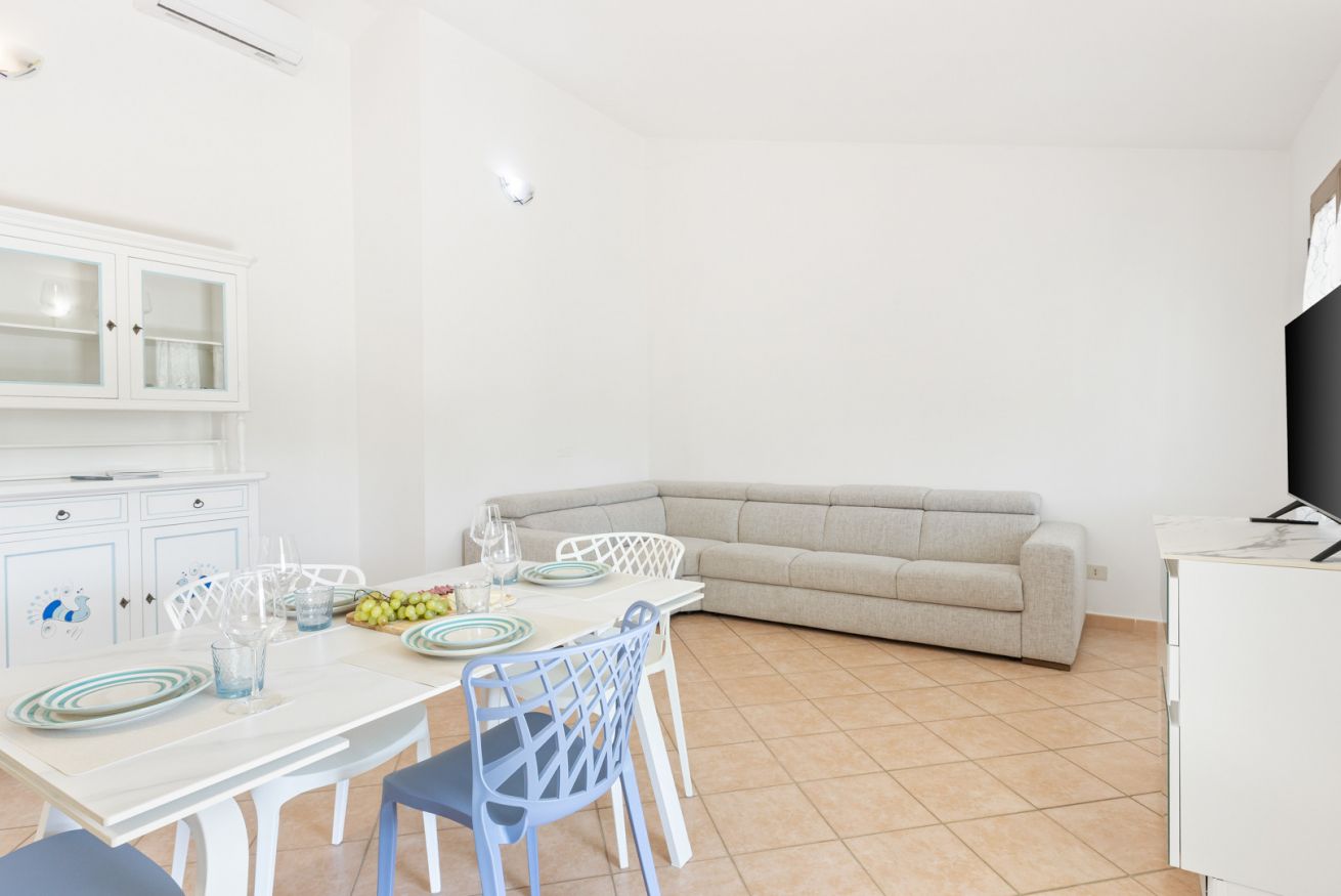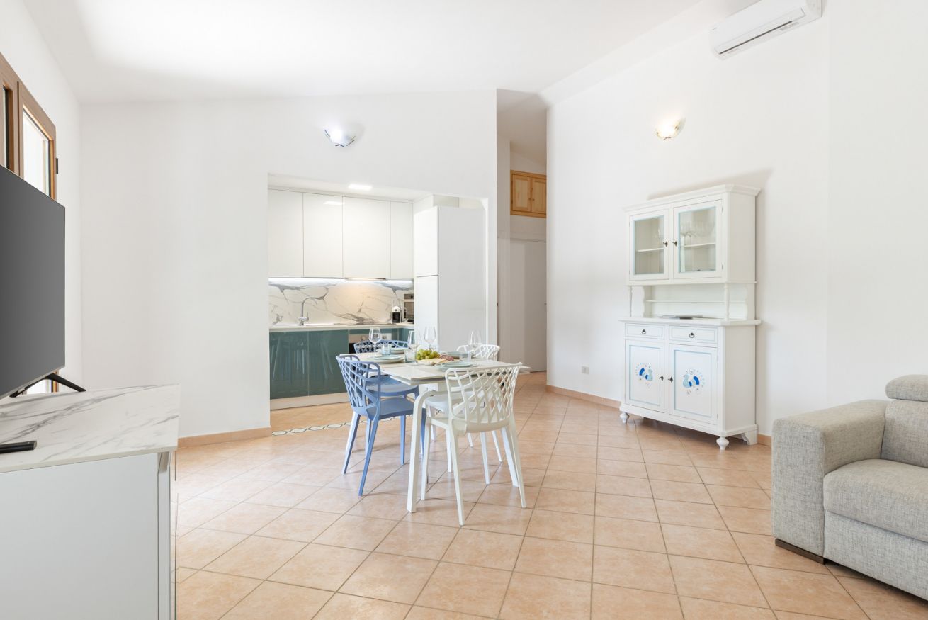 Appena ristrutturata e arredata: un ampio soggiorno con cucina a vista, una lavanderia, due camere matrimoniali e due bagni completi di bidet ed ampia doccia (un bagno è in camera) offrono una soluzione perfetta per famiglie o gruppi di amici in cerca di un rifugio estivo nel massimo comfort. Il patio attrezzato, completo di tavolo da pranzo e divanetti, è il luogo ideale per cene all'aperto e serate di relax. La piscina condominiale aggiunge un tocco di lusso e divertimento alla vacanza ed il WiFi gratuito garantisce di potersi riconnettere al mondo esterno in qualsiasi momento.