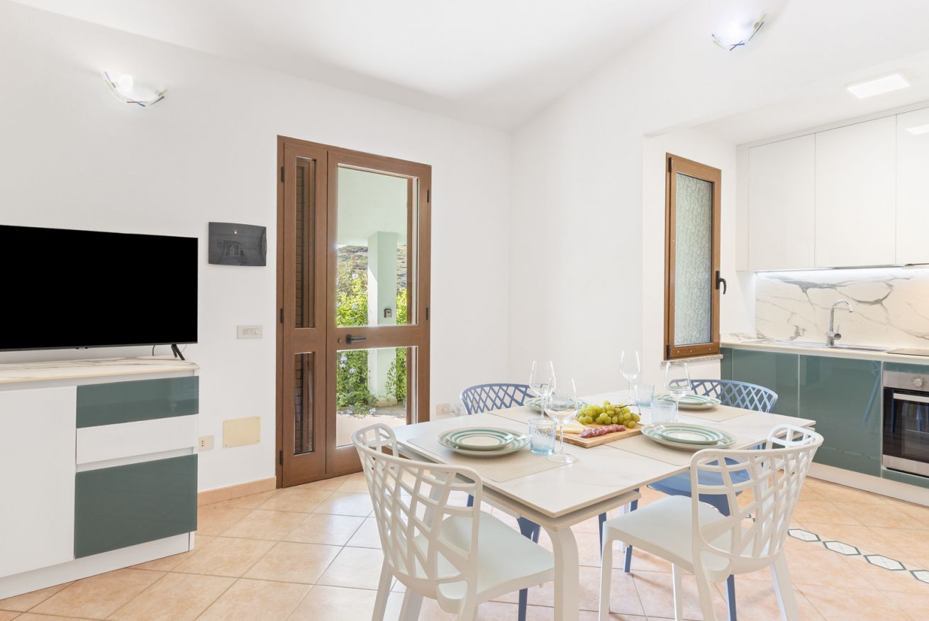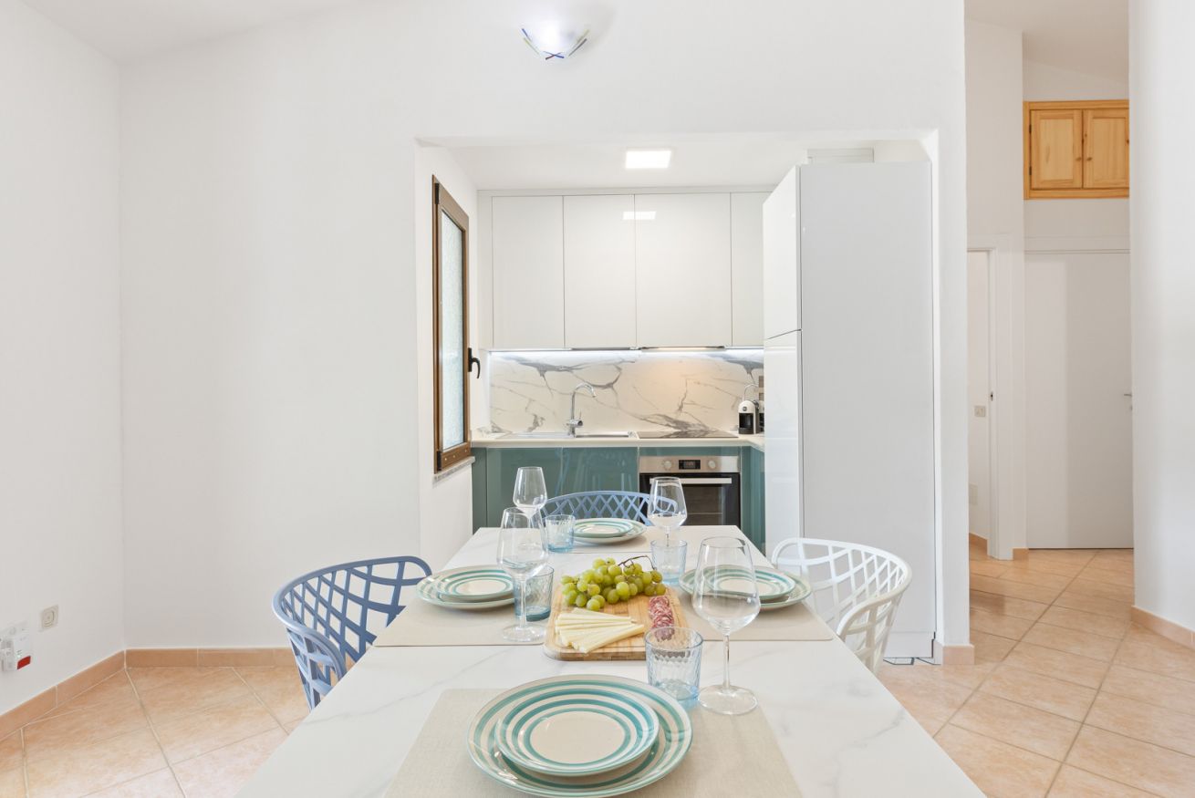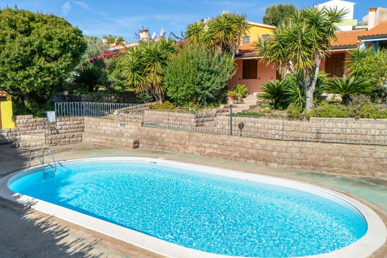 Appena ristrutturata e arredata: un ampio soggiorno con cucina a vista, una lavanderia, due camere matrimoniali e due bagni completi di bidet ed ampia doccia (un bagno è in camera) offrono una soluzione perfetta per famiglie o gruppi di amici in cerca di un rifugio estivo nel massimo comfort. Il patio attrezzato, completo di tavolo da pranzo e divanetti, è il luogo ideale per cene all'aperto e serate di relax. La piscina condominiale aggiunge un tocco di lusso e divertimento alla vacanza ed il WiFi gratuito garantisce di potersi riconnettere al mondo esterno in qualsiasi momento.